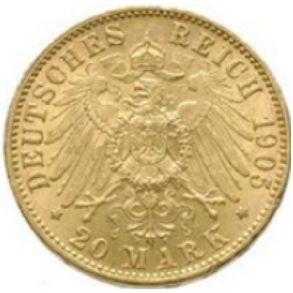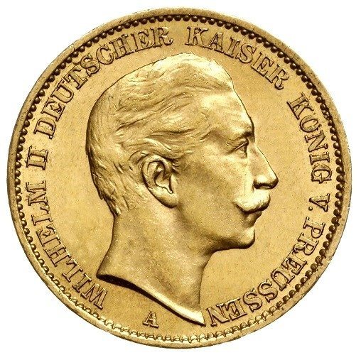 Moneta 20 Marek była emitowana w czasach Cesarstwa Niemieckiego (1871–1915). Na awersie ukazywała portrety cesarzy (m.in. Wilhelma II), a na rewersie niemieckiego orła cesarskiego.