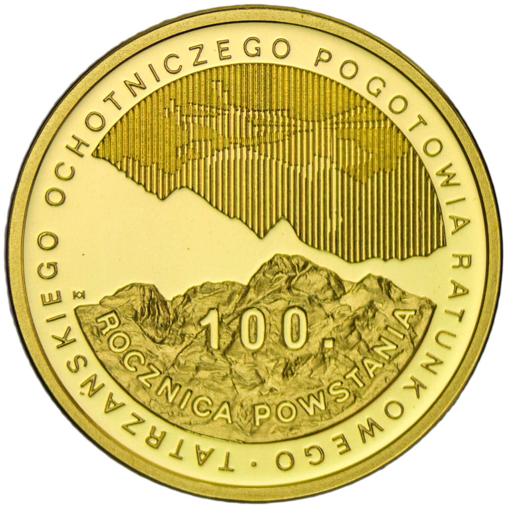 Moneta kolekcjonerska wydana na stulecie Tatrzańskiego Ochotniczego Pogotowia Ratunkowego.